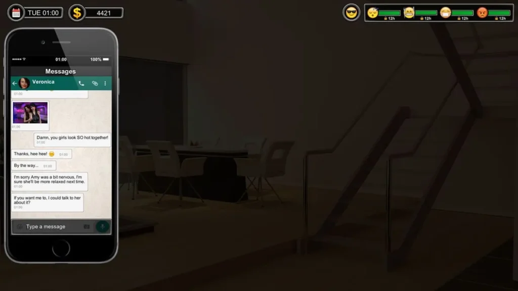 Once your Love is high enough, the 00:00 event becomes available. This is your milestone. Successfully completing the Pull Down Covers sequence will significantly boost your progress. Now, also start interacting with Ashley (the sister) in the evenings (22:00 at the PC) to unlock her path parallelly. Keep grinding daily chats and repeatable events. Check the family PC regularly for the fake email opportunity.